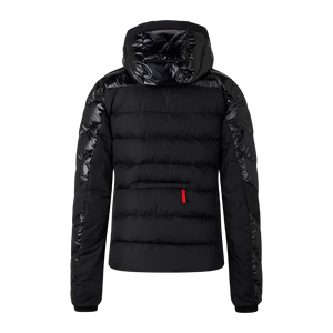 Regular fit quilted jacket with shiny nylon sections featuring padded stand-up collar, detachable hood, long sleeves, elasticated cuffs with inside thumb loop, underlaid two-way zip with B pendant, one seam-covered ski pass pocket on the sleeve Two zip pockets at